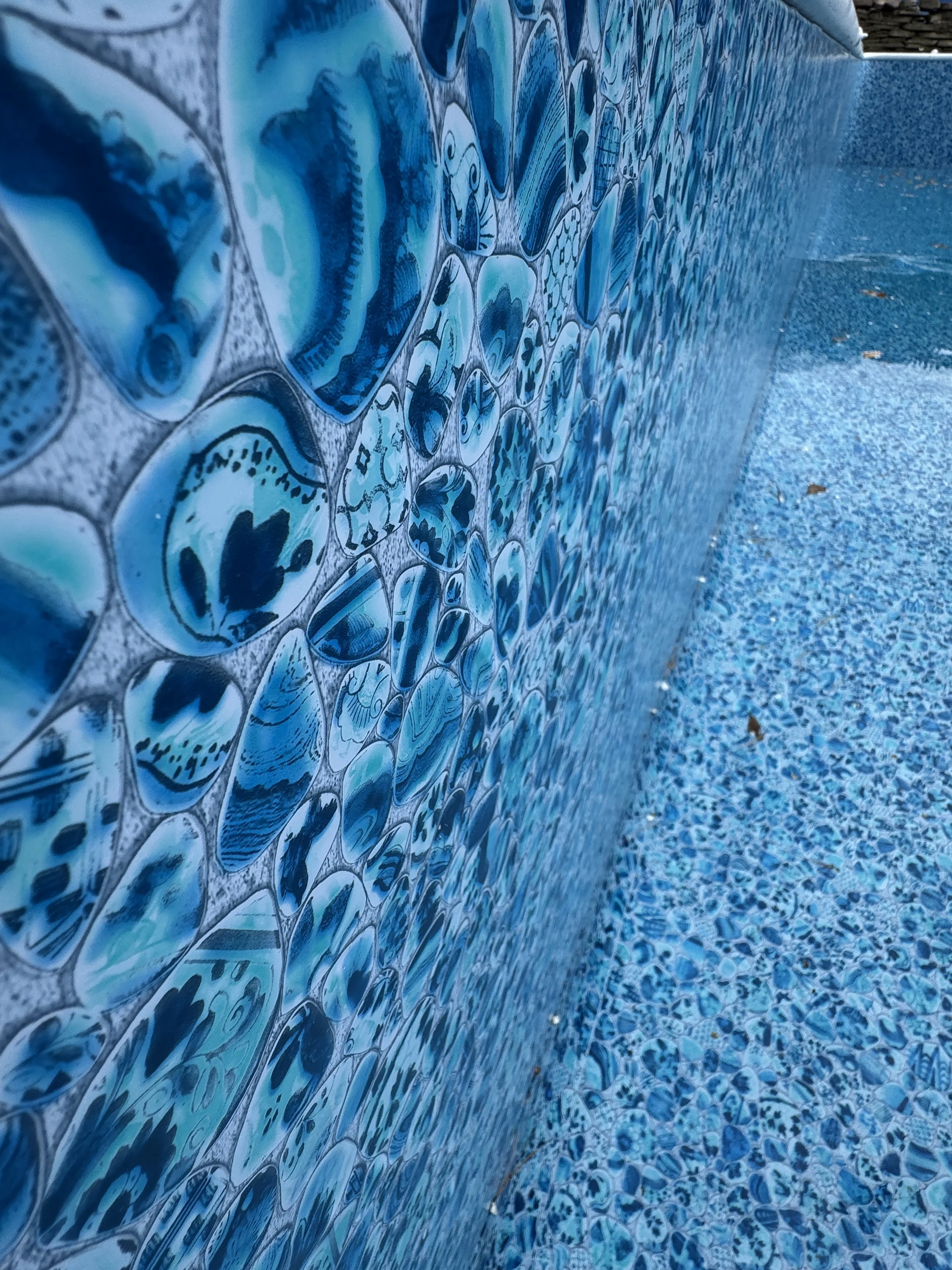The Stone Jewel liner features an all-over stone-inspired pattern that creates a natural, pebble-like appearance in the pool.