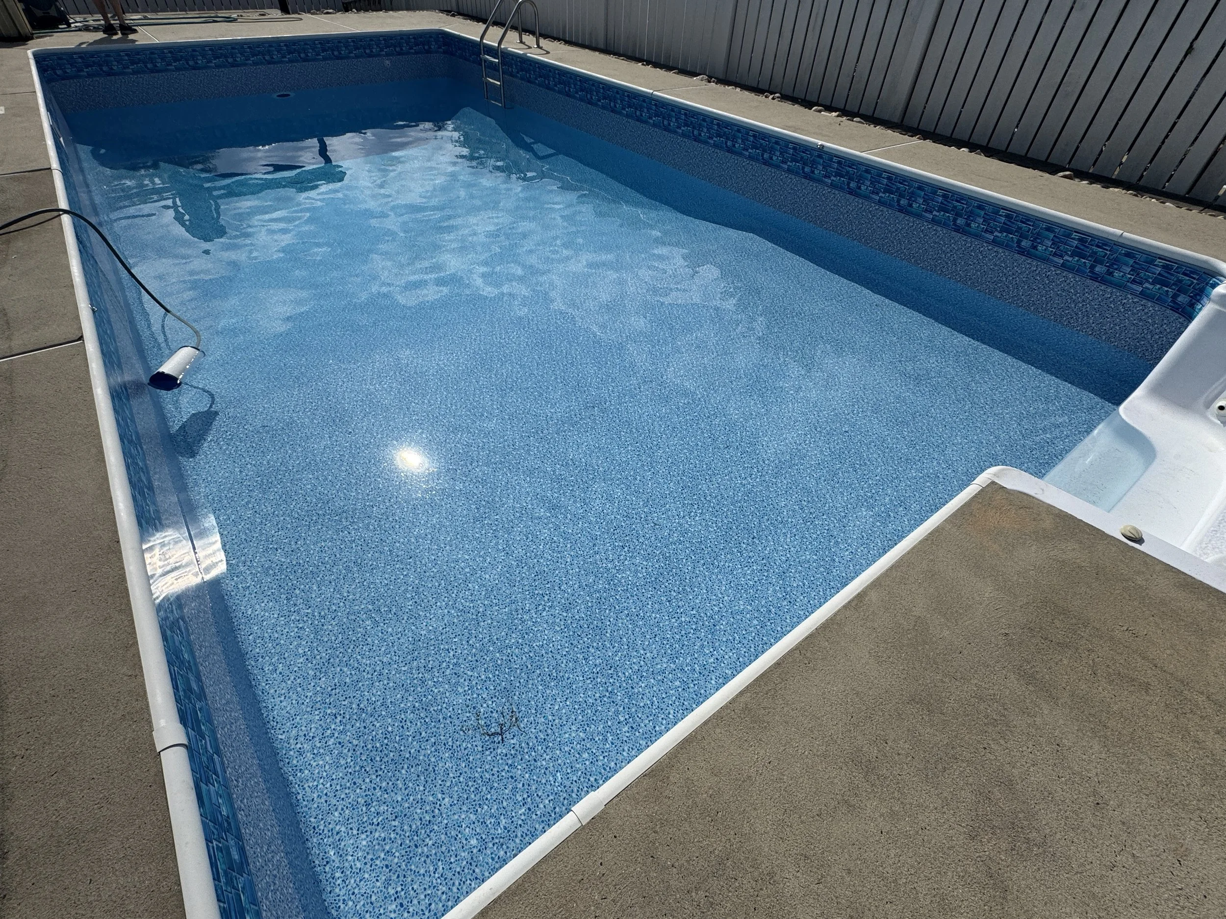 This pattern is part of Dover Vinyl’s Value Series, which includes a complimentary upgrade to 28 mil thickness on the pool walls and 20 mil thickness on the pool floor. To qualify for this free upgrade, the liner must be ordered with the Keyport tile border.